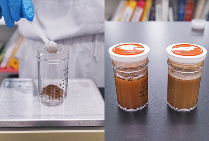 ベトナムの自社農場は主に現地スタッフが運営しており、日本のスタッフが栽培技術や管理体制の指導を行っています。長野本社の栽培チームは定期的に土壌分析を実施し、栽培準備では土壌成分の分析結果に基づく施肥設計から、耕運、施肥、畝立てまでを計画的に進めています。土壌成分分析では専用の機器や試薬を用いて栄養成分を測定し、不足している養分を特定して最適な施肥計画を立案します。収穫後の残留農薬分析は品質保証部門が実施し、基準値以下であることを確認しています。