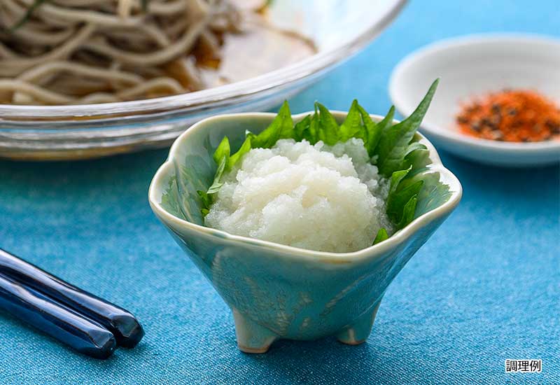 大根本来の風味を味わうために、大根をすりおろしたあとに加熱工程を入れずにフリーズドライしています。生鮮の大根をすりおろしてから90分以内に凍結し、フリーズドライ製法を用いることで、おろしたての新鮮な風味を閉じ込めました。生鮮の大根をすりおろしてから凍結するまでの時間を厳しく管理しているため、大根の風味がより感じられます。